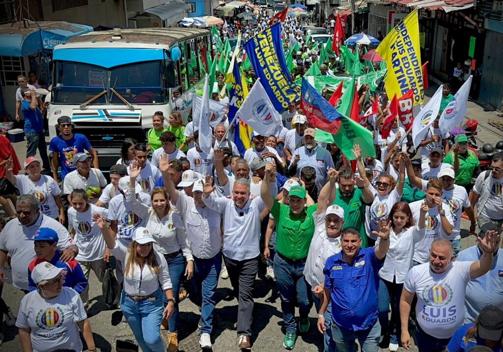 Continuando con su gira nacional de cara a las elecciones del 28 de julio, el candidato de AD, Copei, BR, MR, y DDP, UNE e independientes, Luis Eduardo Martínez, encabezó al mediodía de este sábado una importante movilización por el centro de Santa Teresa, en los Valles del Tuy, estado Miranda.