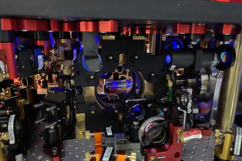 Construyendo el primer ordenador cuántico analógico. Mediante láseres, el ICFO fue reduciendo la temperatura del gas de estroncio hasta que los átomos de este formaron un superfluido y permitieron observar cada uno de los 300 átomos con los que se trabaja.