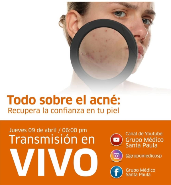 El próximo 9 de abril, a las 6:00 p.m., el canal de YouTube del GMSP será el escenario de una nueva edición de su programa En Vivo “Todo sobre el acné”. En esta oportunidad, la doctora Fabiana Ortega, médico cirujano y especialista en dermatología de la institución, ofrecerá una guía clara y basada en evidencia para entender y tratar el acné.