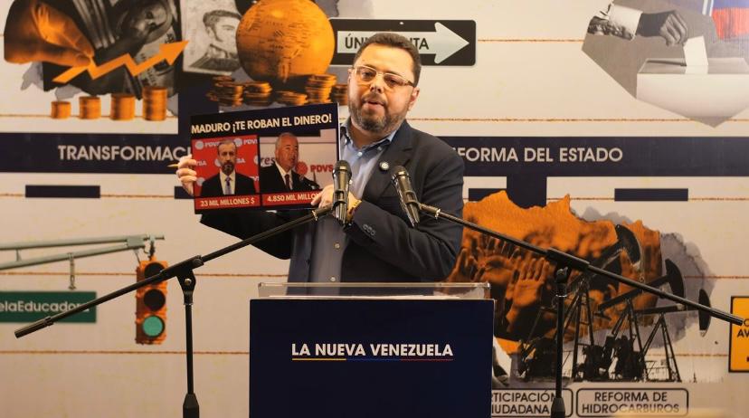 Asimismo, en la lista de carteles, Ecarri mostró una con la imagen de Rafael Ramírez y Tareck El Aissami, ambos expresidentes de Petróleos de Venezuela S.A. (Pdvsa) y otroras ministros del Petróleo denunciados por desfalco a la nación. «Esta foto tuya no es buena».